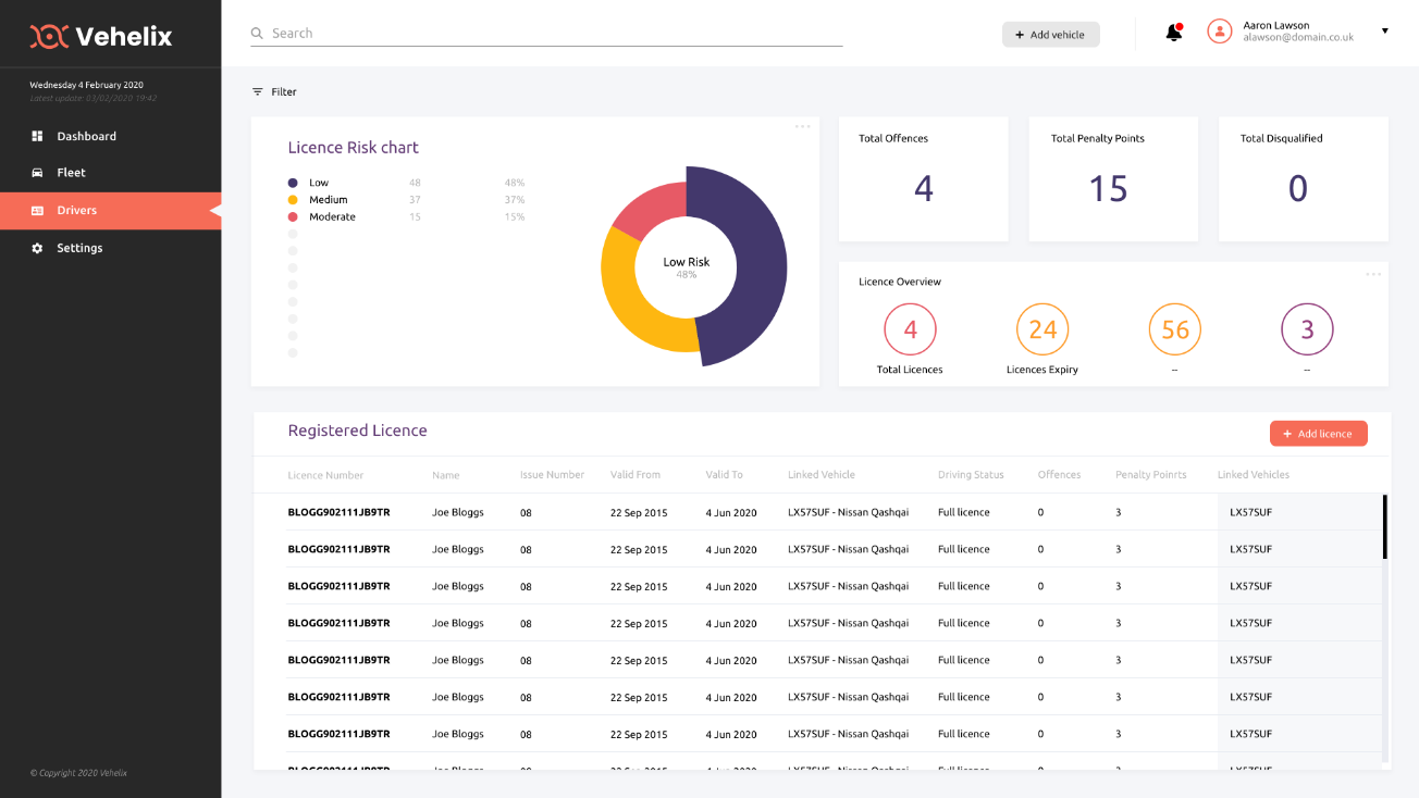 Thanks to Vehelix’s ability to personalise individual vehicle or driver accounts with relevant tags, notes and information, you can easily monitor performance and stay ahead of potential issues or risk.
